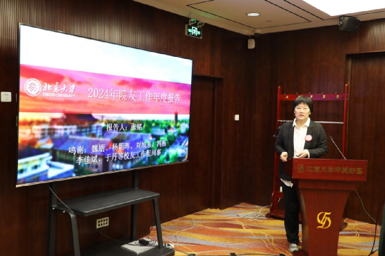 院友会秘书长张铭代表学院校友理事会作2024年度工作报告,随后介绍2025度校友工作计划并就精心准备的材料组织讨论。